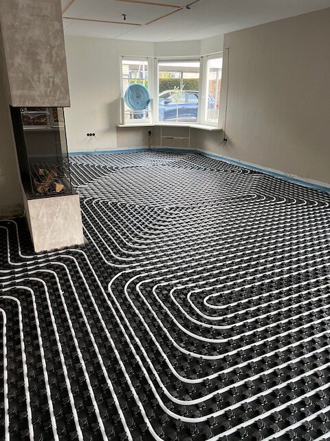 Het project omvat onder andere de woonkamer, hal, bijkeuken en meerdere nevenruimtes. Dankzij de watergedragen vloerverwarming wordt het hele huis straks comfortabel en energiezuinig verwarmd, zonder zichtbare radiatoren.